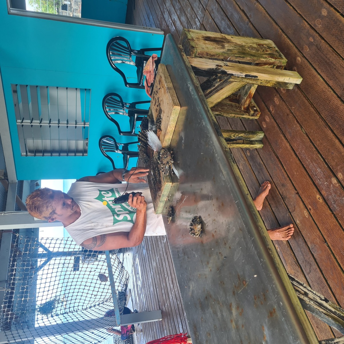 Our final day of the trip had arrived. Early in the morning, we dropped off the part of the crew who wanted to explore Raiatea by car at a local restaurant. We took a short walk along the road to the nearby small marina — and once again saw sharks swimming just below the surface. It seems they are truly everywhere around these islands!