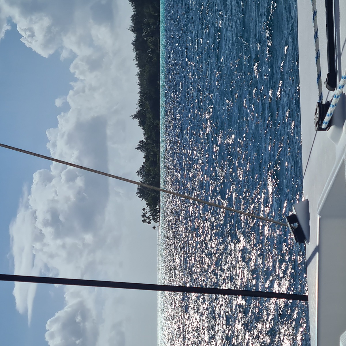 But even paradise days must come to an end, and eventually Bora Bora had to say goodbye to us. Early in the morning, a strong easterly trade wind was already blowing across the lagoon, so before leaving we put in the second reef and rolled out about 75% of the jib — just enough for a safe and steady passage. The ride back to Raiatea was lively and bumpy, but the catamaran handled it beautifully. Although cruising cats aren’t known for sailing well upwind, we managed to keep about 45° to the wind — with a little help from the engines, of course. After roughly four and a half hours and 30 nautical miles, the familiar outline of Raiatea came into view.